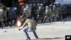 Selon la police, 8.000 personnes ont participé dans le centre d'Athènes au défilé du Pame, le front syndical communiste, et 6.500 à l'autre cortège, emmené par les deux grandes centrales, GSEE pour le secteur privé et l'Adedy pour la fonction publique.