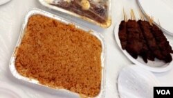 "C'est très populaire parce que c'est facile à adapter en fonction des évènements", explique la cuisinière en préparant des portions à emporter pour les gourmands qui s'alignent devant ses fourneaux.